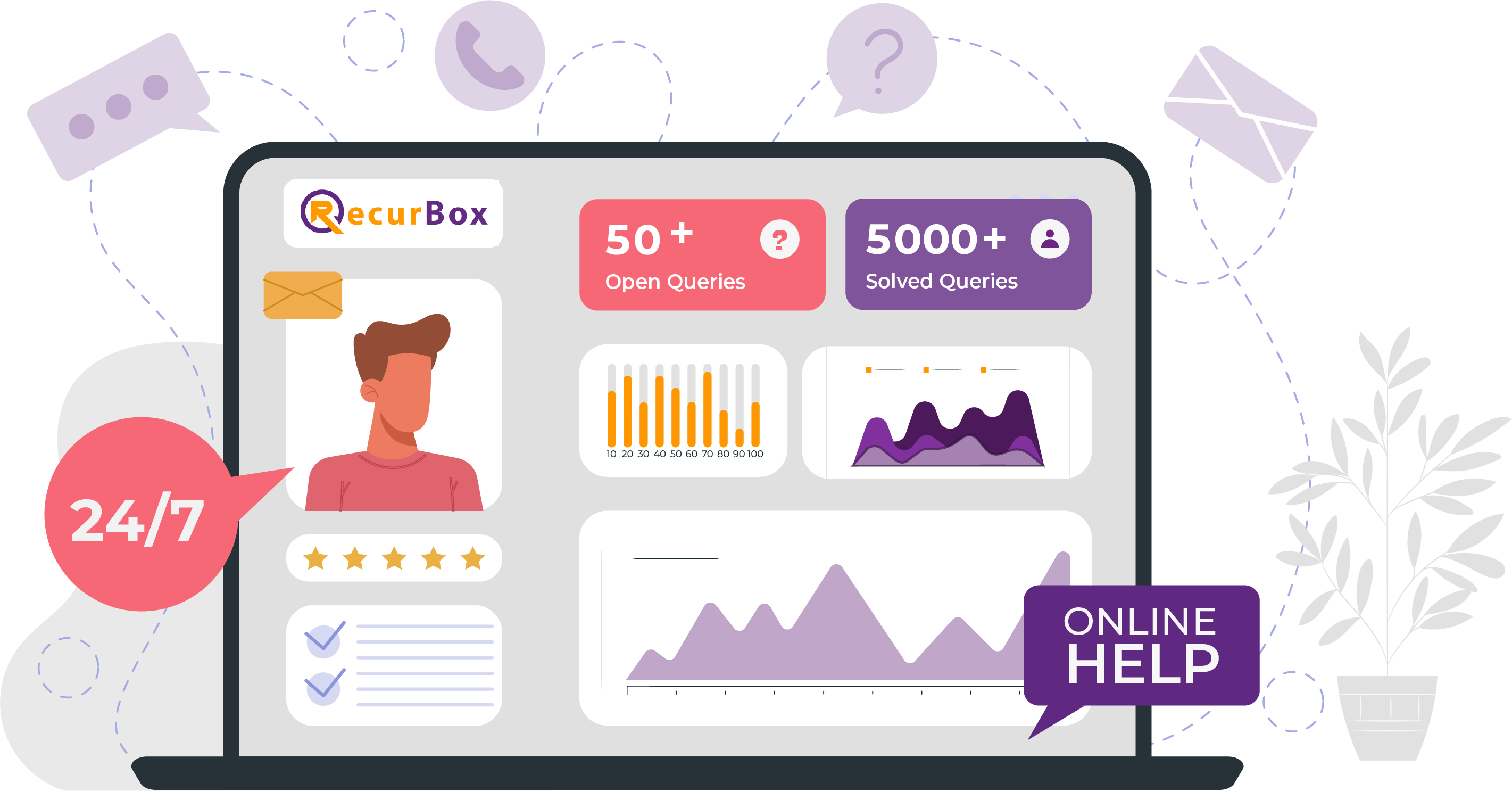 Recurbox provides a customer service helpdesk that sits tightly within your customer and subscription data to empower teams to deliver outstanding support quickly.